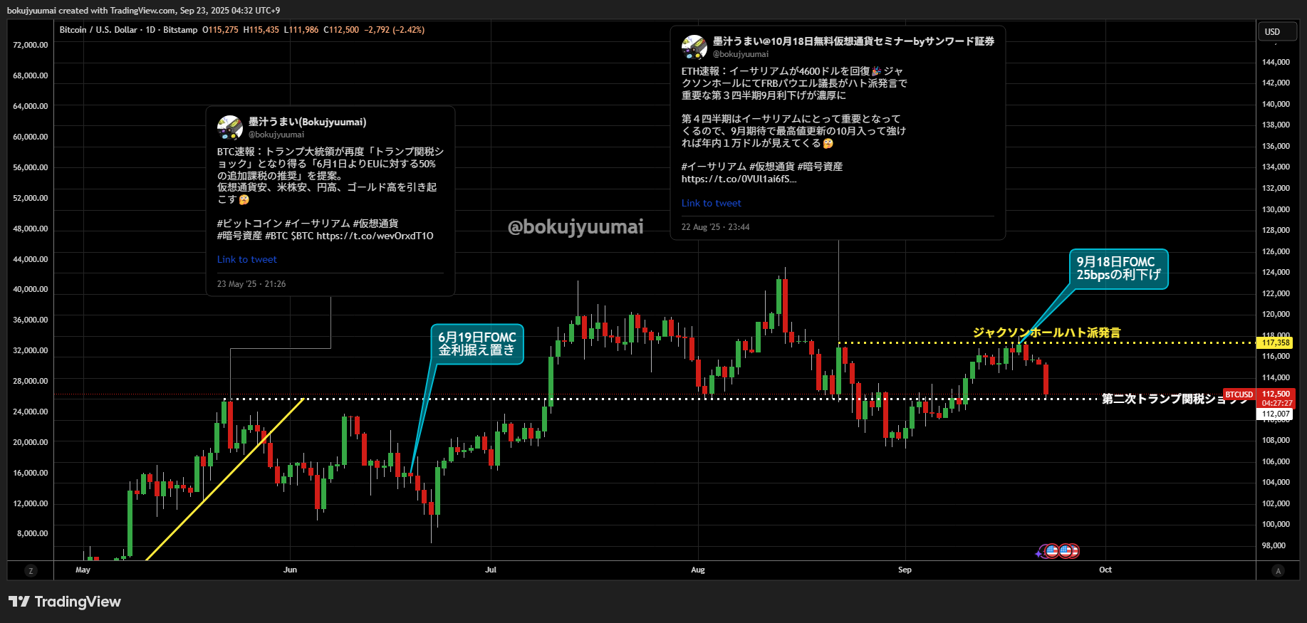 9月FOMC前の2025年仮想通貨相場見通しについては墨汁マガジンVol.1160「イーサリアムなど仮想通貨(暗号資産)の相場が9月勝負な理由」を参照してください。