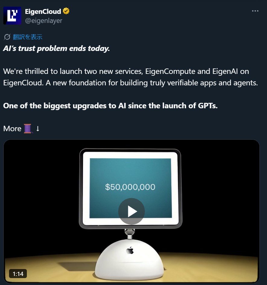 EigenLayer:EigenCompute及びEigenAIのローンチ発表